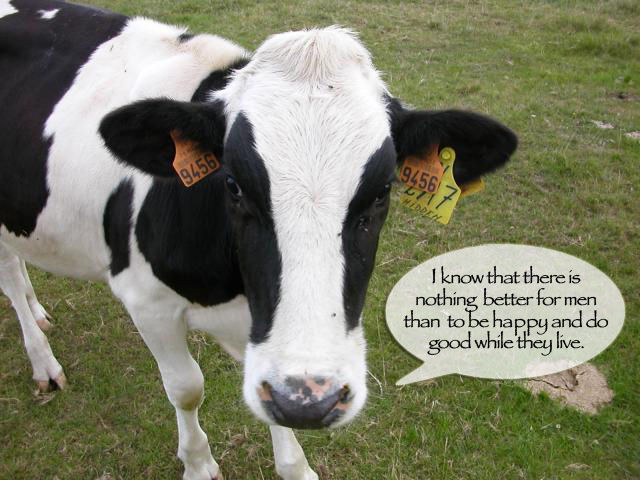 This got me thinking about cows and the way they stare at us, at farmers and veterinarians as they work. What are they thinking about? Do they have some sort of wisdom or insight into the meaningless and toil of work? Then, to be honest, it just really made me smile and laugh to think of cows speaking verses from Ecclesiastes. So... there you go.