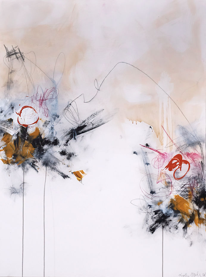 Michigan-based artist Katherine Marley makes abstract paintings comprised of scraped, smeared, scribbled, and pools of pigment that interprets healing through the thoughts between what is known and the truth of how it is felt.